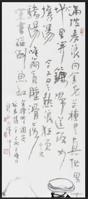 郭先生的心里“满坡麦浪”闪的是“金光”,农田里忙碌的人们,面朝大地背朝天,这份踏实是属于中华民族这个以农业为主的民族的感受,不过,这样的审美体验,又有多少人还能够感受与体验呢?最难得的是下阙“今又是,热正狂,更骄阳。唯翁贪睡,滑落闲书,碰倒鱼缸。”一个“闲”字,一本“闲书”,信手写出了一场午后的“意外”,却更凸显的那些当下的“理所当然”。