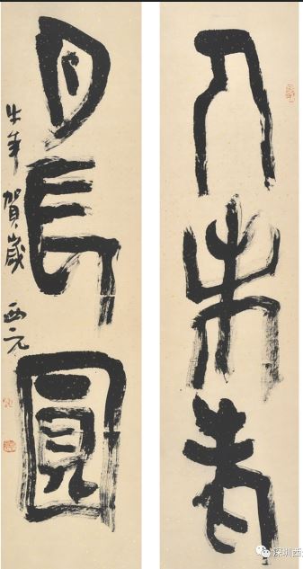 我的“畏”却是源于对一副对联的讨论和敲定。郭教授对那副对联的“意”与“境”的严谨简直到了不可理喻的地步。一副对联反反复复从书写到敲定达半年之久。当时心里想:这个老爷子真是又难缠又多事儿。但是现在想:这种对完美的苛求是不是就是对艺术最高的诠释?!