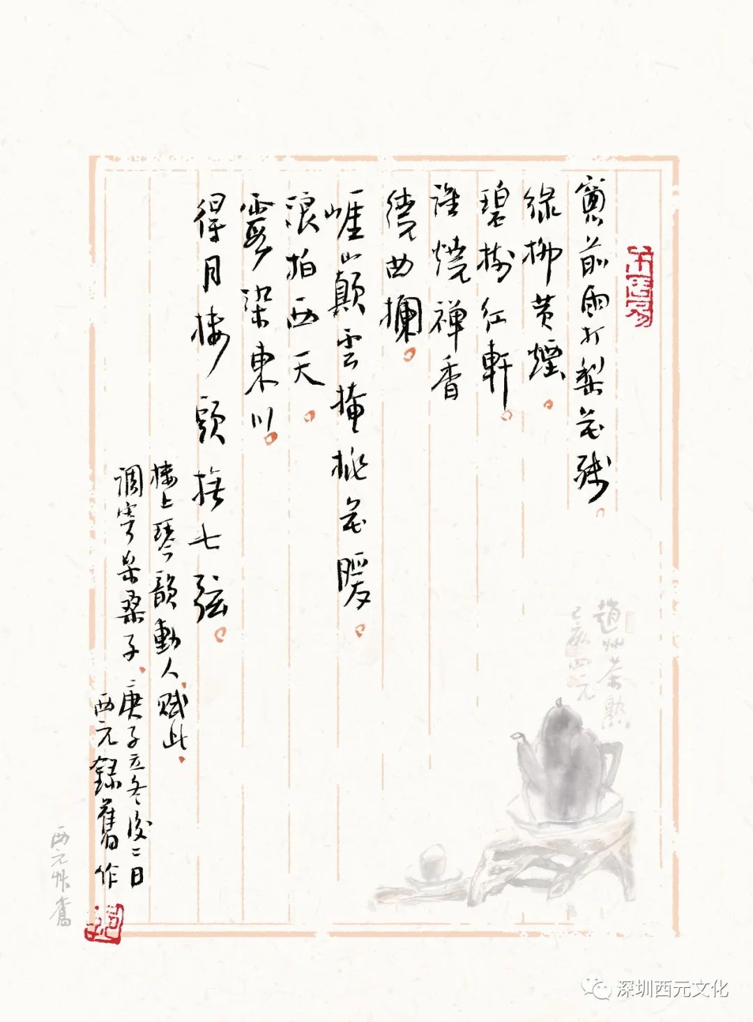 2016年,我在网上发了一组词,不知怎得就流落到深圳的圈子里,被郭老爷子的公子看到,辗转的加了我的微信,遂成了文友。公子爱写字,毅力非凡,每日坚持。一看就是家学厚重,后来果然得知,其口中经常念叨的老爷子竟然是深圳大学教授、硕士生导师、文人画研究所所长郭西元先生。百度查:郭氏擅长中国画、书法,从师于刘海粟、陈大羽诸先生,风格豪放洒脱,独具一格。作品有浓厚的文人气,被誉为“原形态”的文人画家。