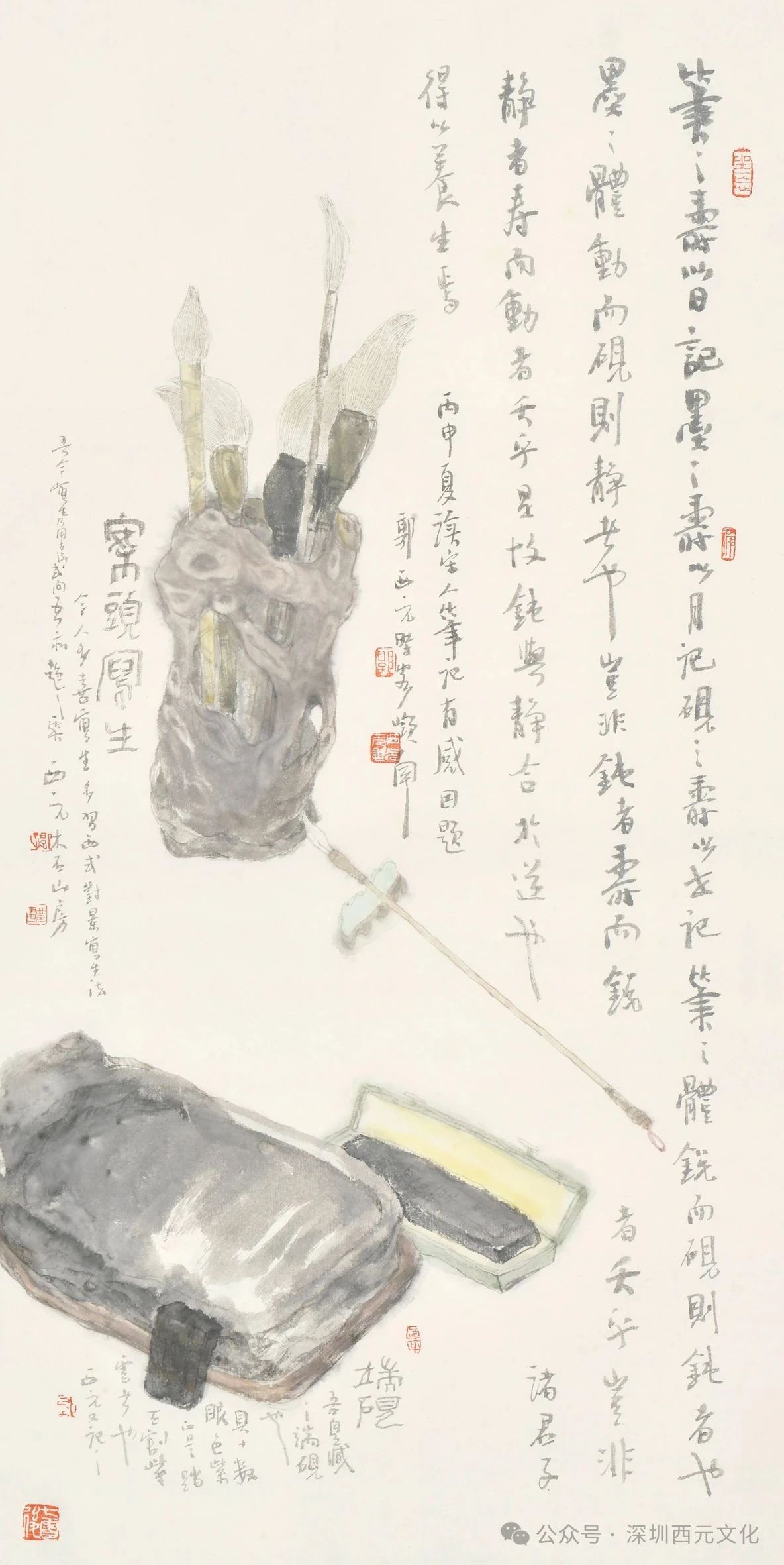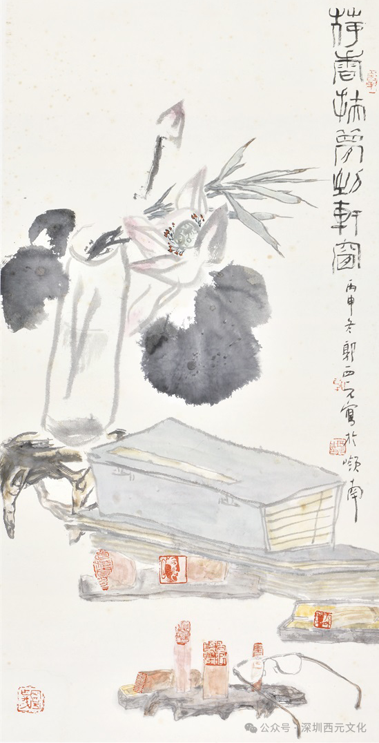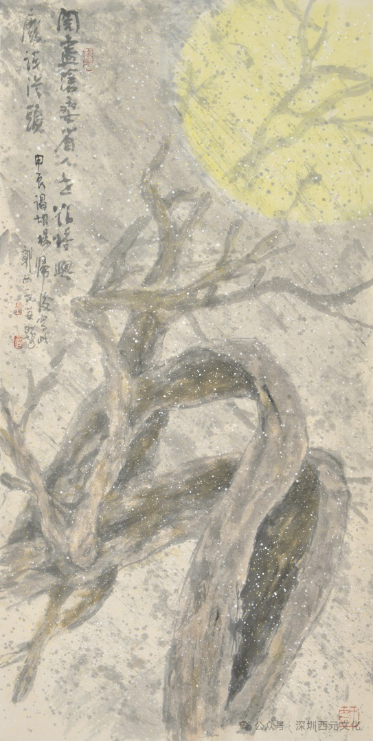 作为深圳大学文人画研究所所长,郭西元以“文化守夜人”的自觉,在现代化都市中构筑传统水墨的精神堡垒。他提出“回归中国”的学术主张,强调笔墨不仅是绘画技法,更是文化基因的视觉显现。在教学与创作中,他倡导“诗书画印”的综合修养,将文人画的“四品”标准(人品、学问、才情、思想)转化为当代艺术教育的实践路径。