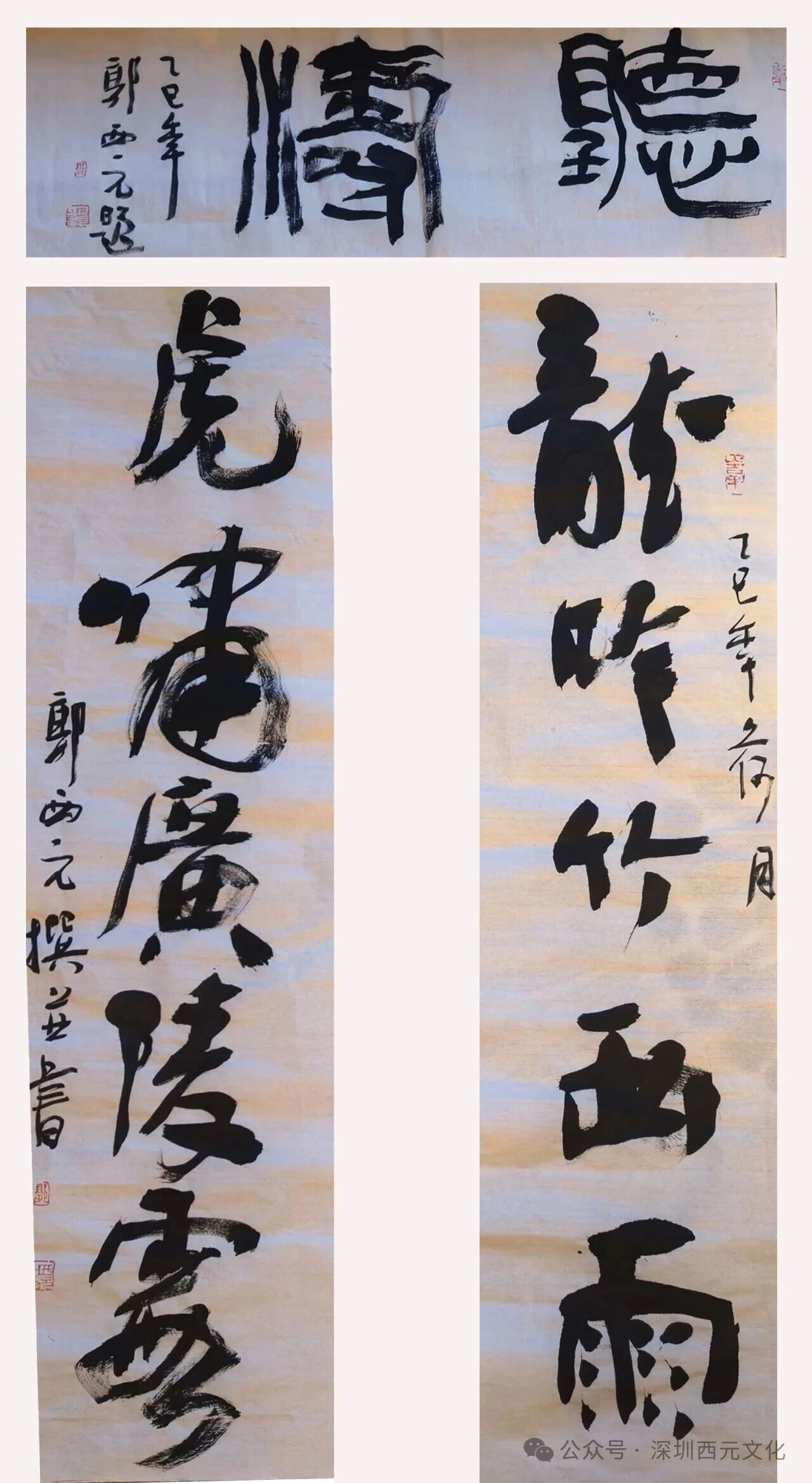 别后月余,得万庆董贻图。但见联抱朱柱,匾悬素额,皆维扬妙手精雕细琢,因喜,书此以记此段翰墨因缘。