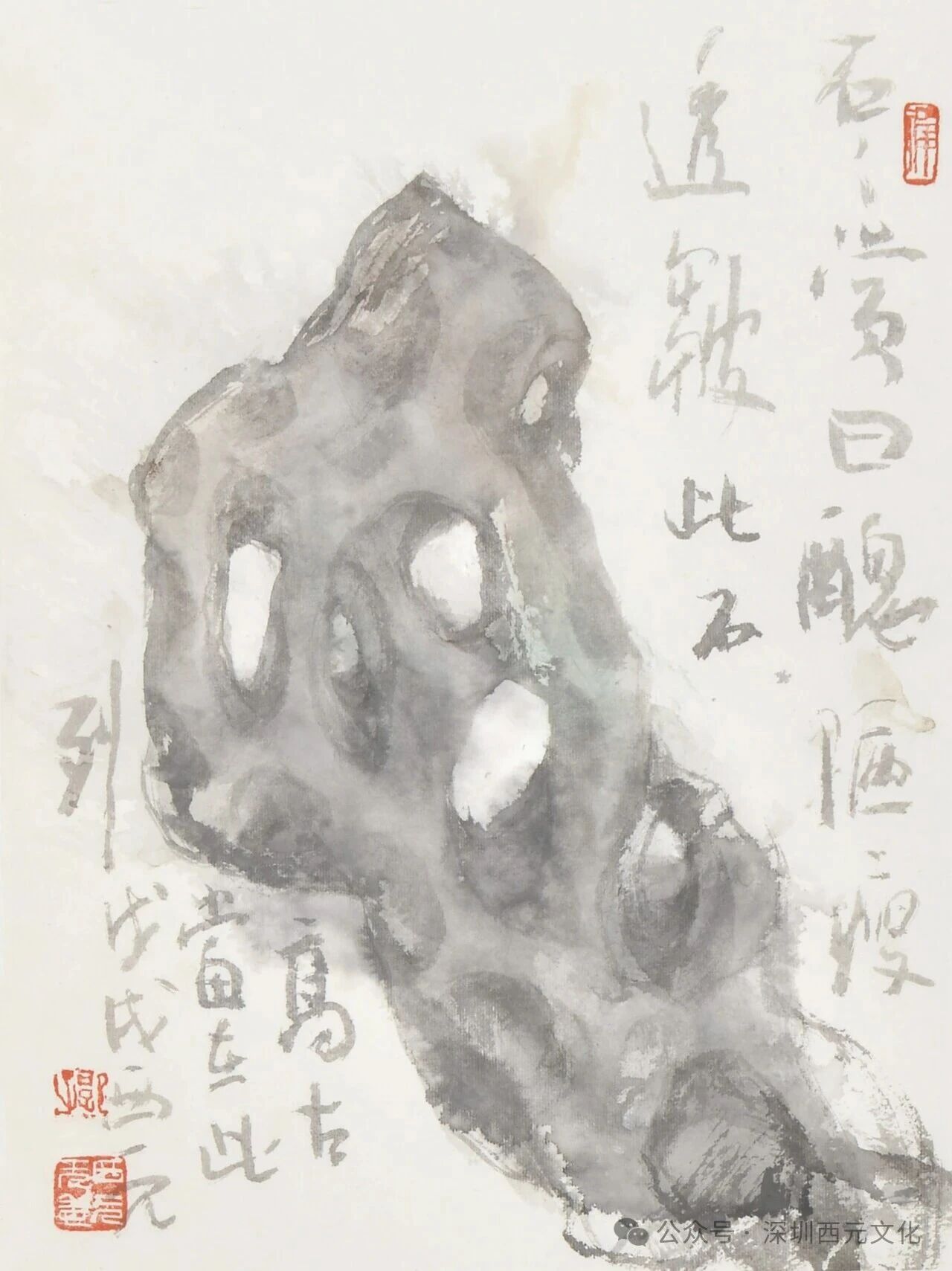 题款:石之赏 曰 丑 陋 瘦 透 皱 此石高古 当在此列 戊戌 西元