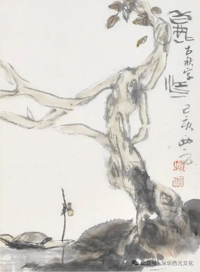 先生不占俗事,非疏离尘世。而是以水墨为舟,跳脱市井喧嚣,直抵自然本真。《秋江》无车马之喧,无烟火之扰,只枯树扁舟,构此极简景致。却能让观画人如临秋江,听风过枝桠,看水漾清波,心自远于尘嚣。以简笔传文人意趣,让传统水墨的精神,在当代依旧动人。此即郭西元先生画作的真味。