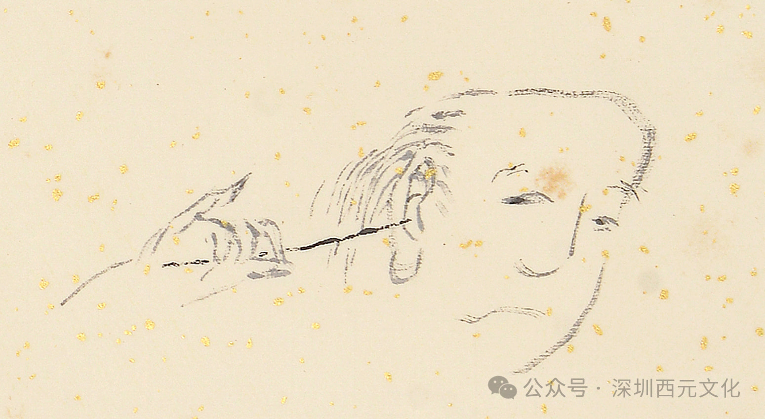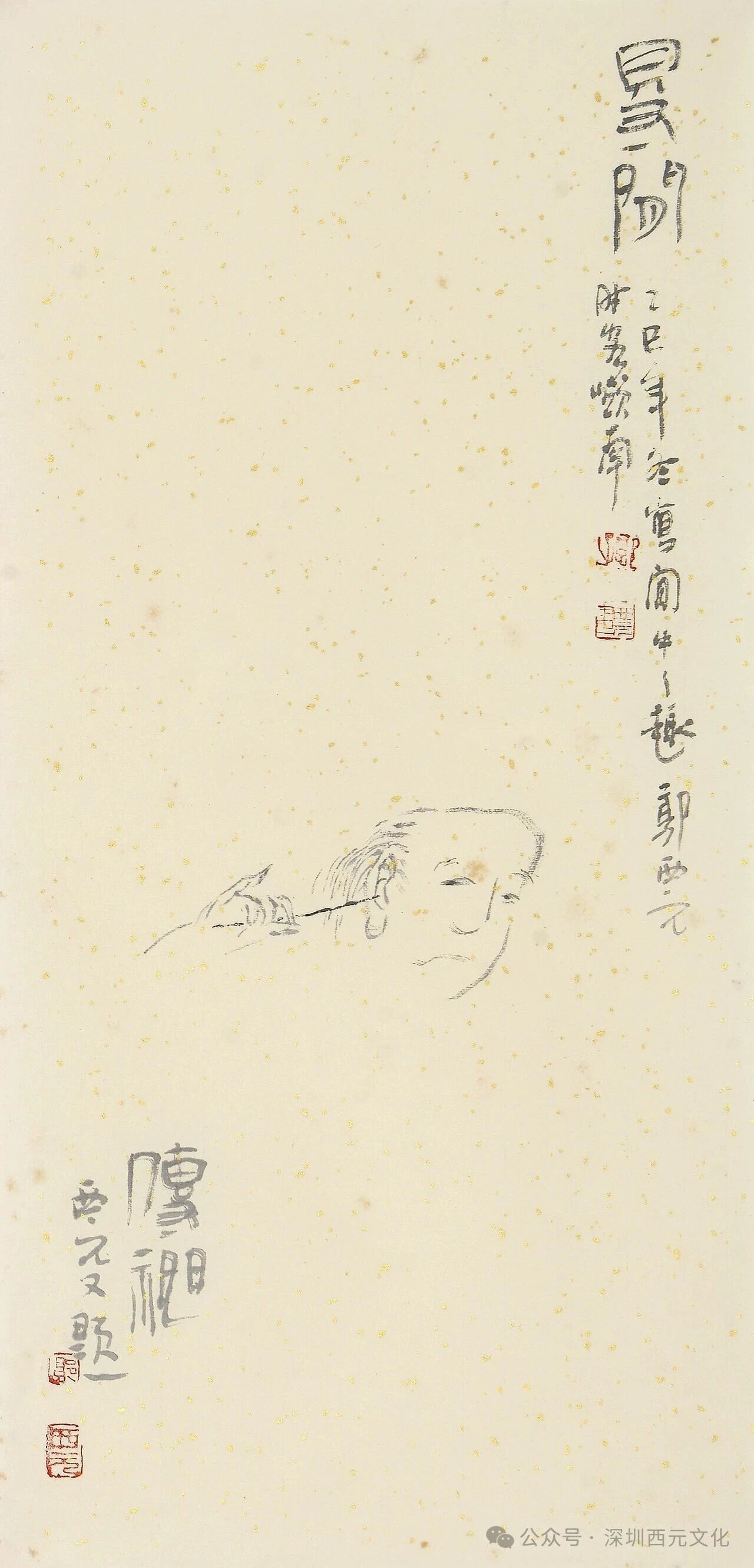 郭西元先生的的这幅“得闲”,画得是逸笔草草,如果非要用当下的大数据来计算,这三十几笔的作品,是否会被判定为“儿童画”也未可知,但就是这数十笔,把郭先生心中的那份闲中之趣画得是那样的丰盈。看那眉眼,再读那张微微撇开的嘴,勾起的手指把这份难得的闲适状态写得“传神”。