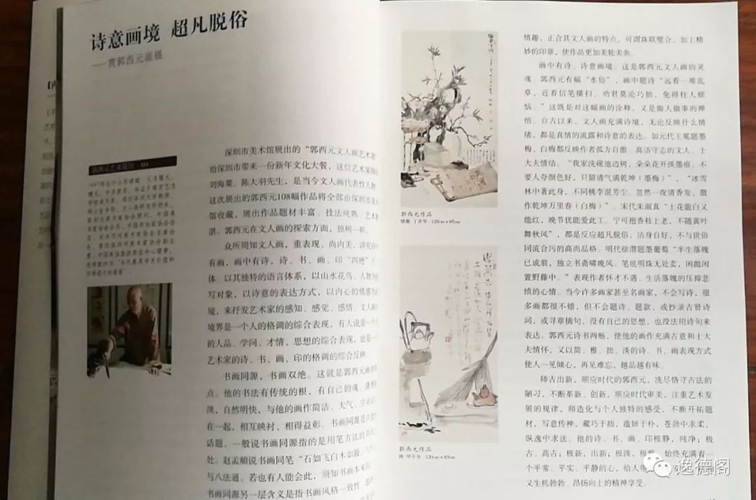 编者按:著名诗人、书法家、文艺评论家程秉洲先生的艺术专著《半水艺品》日前由中国林业出版社出版,其中专门收录其评论诸多艺术大家的专评,最新一篇便是去年年末,在观赏郭西元先生画展之后所写这篇《诗意画境 超凡脱俗》。在此专门奉上,以飨诸位方家。