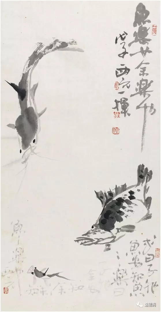 西元有一张老鹰站在大松树上,我们不迷信古人,但是我们也非常尊重古人,我们学传统也要创新,画的非常生动和自然,再看齐白石的,拍卖4亿多,比较一下大家都知道,比较一下就知道什么好,外面的荷花八尺,一气呵成,所以中国写意画是最难的。