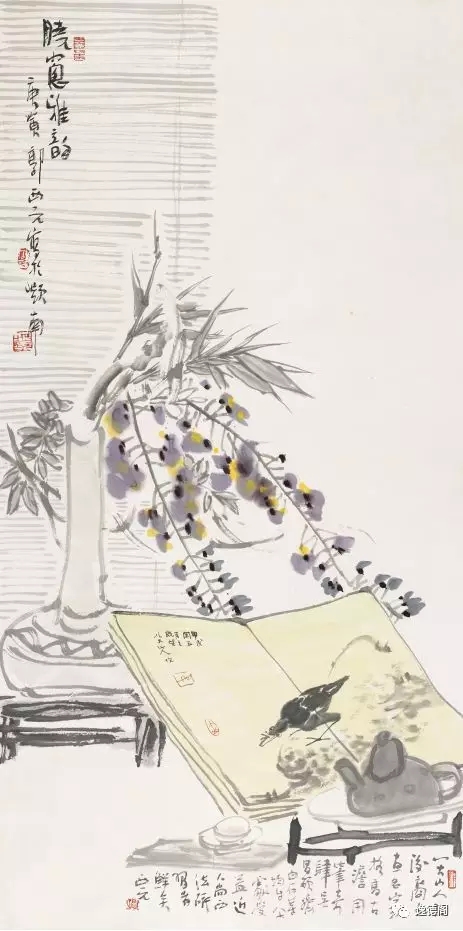 第二,创作的双翼,可以说是两方面的结合,这两方面的结合使他的艺术在绘画之外有研究,通过他的研究来对教学,对文人画的发展梳理和提倡,都起了很大的作用,他的德和义是双行的。