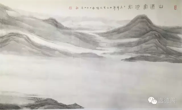 郭先生谓此画乃“山逼画境新”,或者更多是一份自我的感悟,天地造化,穷一生不可尽观,而人生境界,亦无一刻不在变化。王国维说过人生的三重境界,“古今之成大事业、大学问者,必经过三种之境界。‘昨夜西风凋碧树,独上高楼,望尽天涯路’,此第一境也;‘衣带渐宽终不悔,为伊消得人憔悴’,此第二境也;‘众里寻他千百度,蓦然回首,那人却在灯火阑珊处’,此第三境也。”那么过了三重境界,又是什么,王国维没说,在我看来也不用说,回到开始,再来一遍呗,只是此时的高楼又是另一座高楼了。这或许就是郭先生所说的“画境新”的“新”。这或许也正是人一生的“不二法门”(且看郭先生左下压脚一枚印“不二法门”)