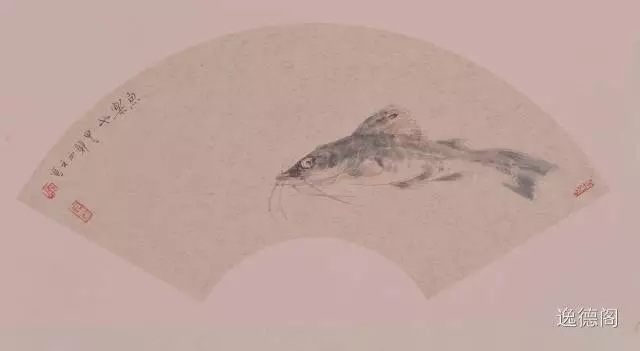 再品其位置经营,鱼头正在扇面正中,或者说鱼眼正是扇面的正中分割线上,似鱼自右向左游来,瞥见读画人一眼,鱼悠游而过眼前,真是“自由”、“自乐”。