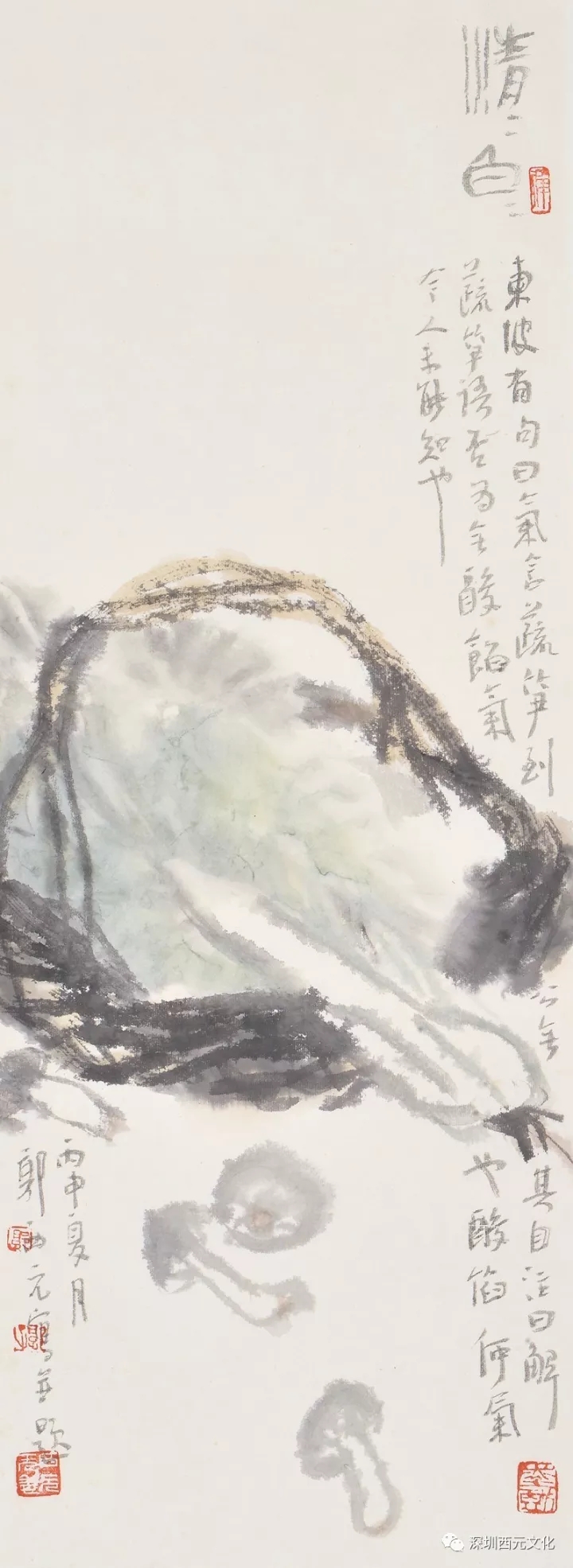 来看题识:“东坡有句曰:‘气含蔬笋到公无。’其自注曰:‘解蔬笋语否?为无酸馅气也。’酸馅何气,今人未能知也。”苏东坡评人画,将酸馅气批驳一番,郭先生又说今人未知,那么究竟如何是酸馅气?那是一种在环境与自我的作用下,形成的发酵味道,或者也是有人喜欢的,然而与蔬笋的天然之味相较,少了一些的淡雅与清香,有的则是强烈的味觉体验。