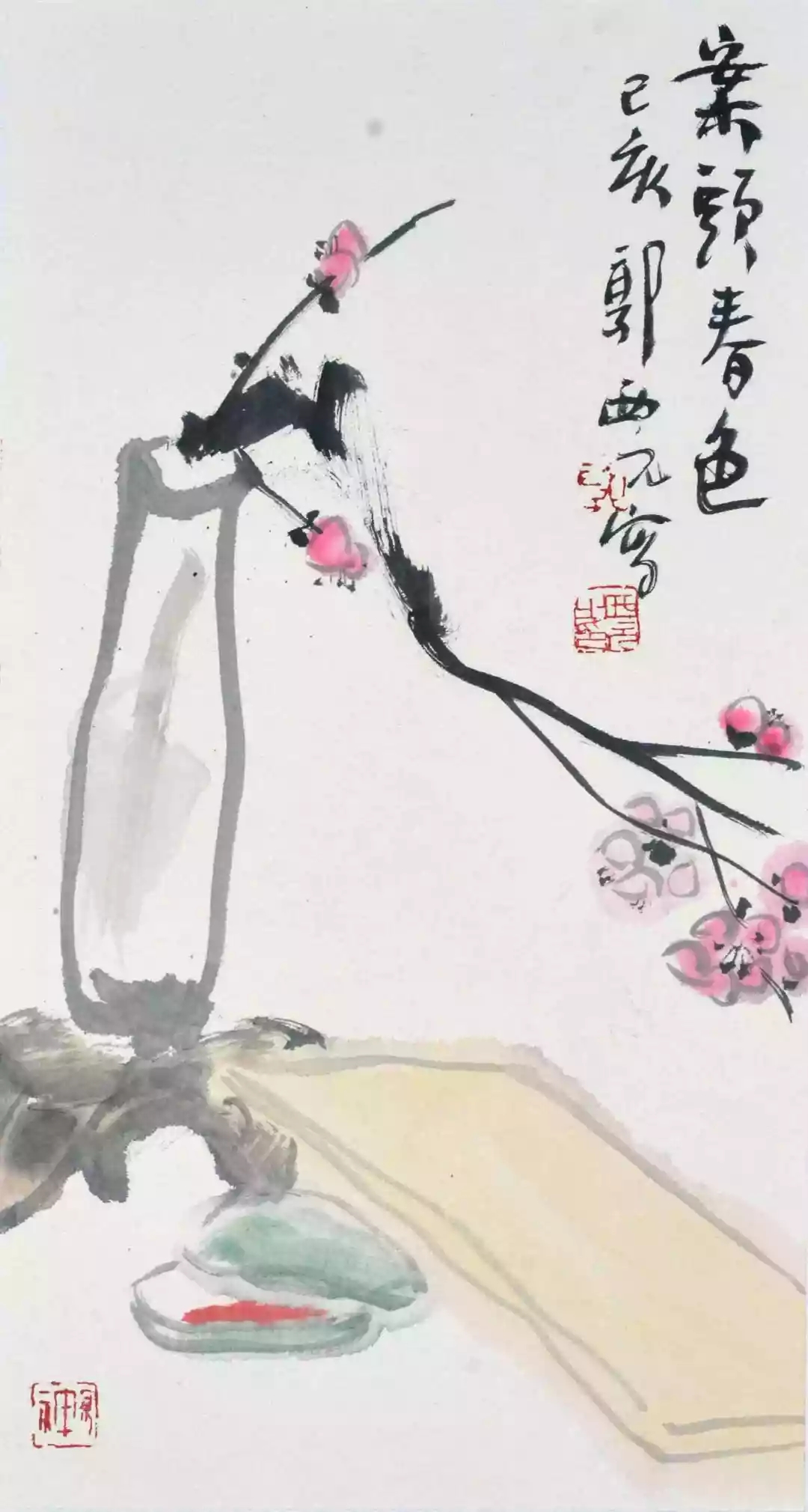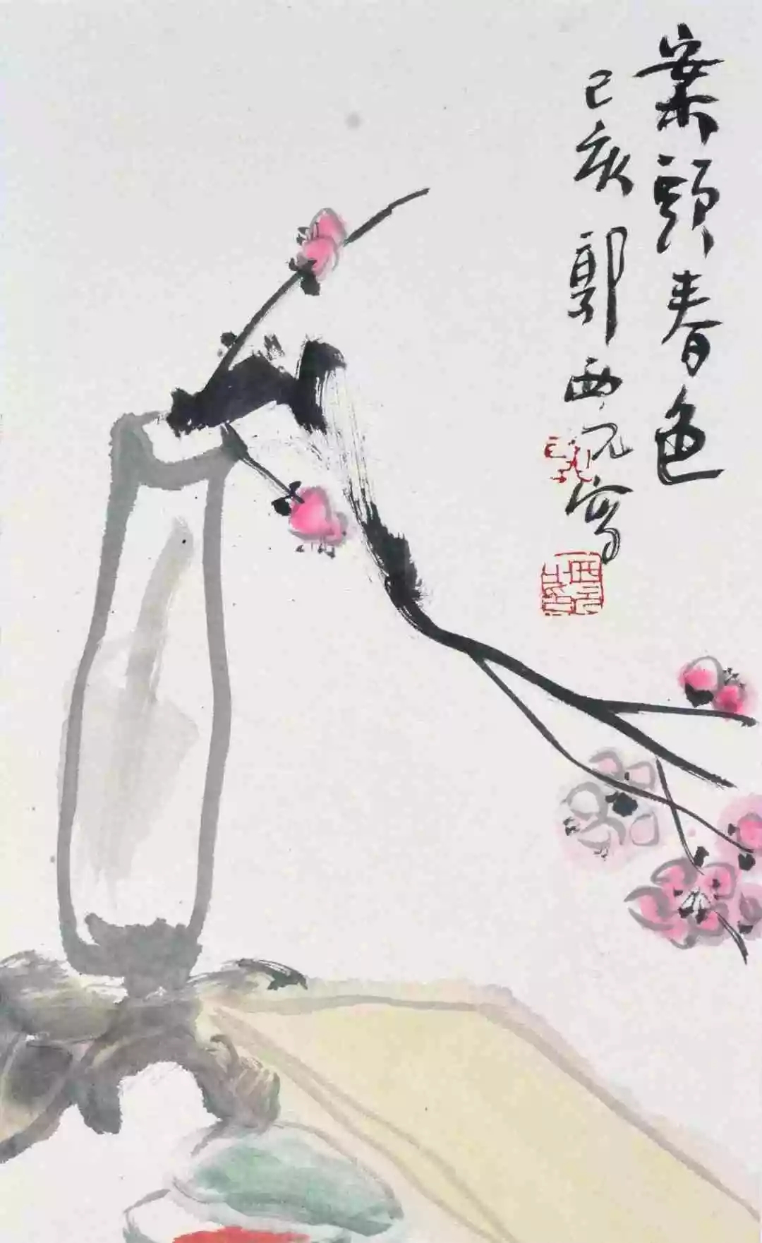 《案头春色》局部 郭西元 2019年作 《案头春晓》郭西元 2012年作