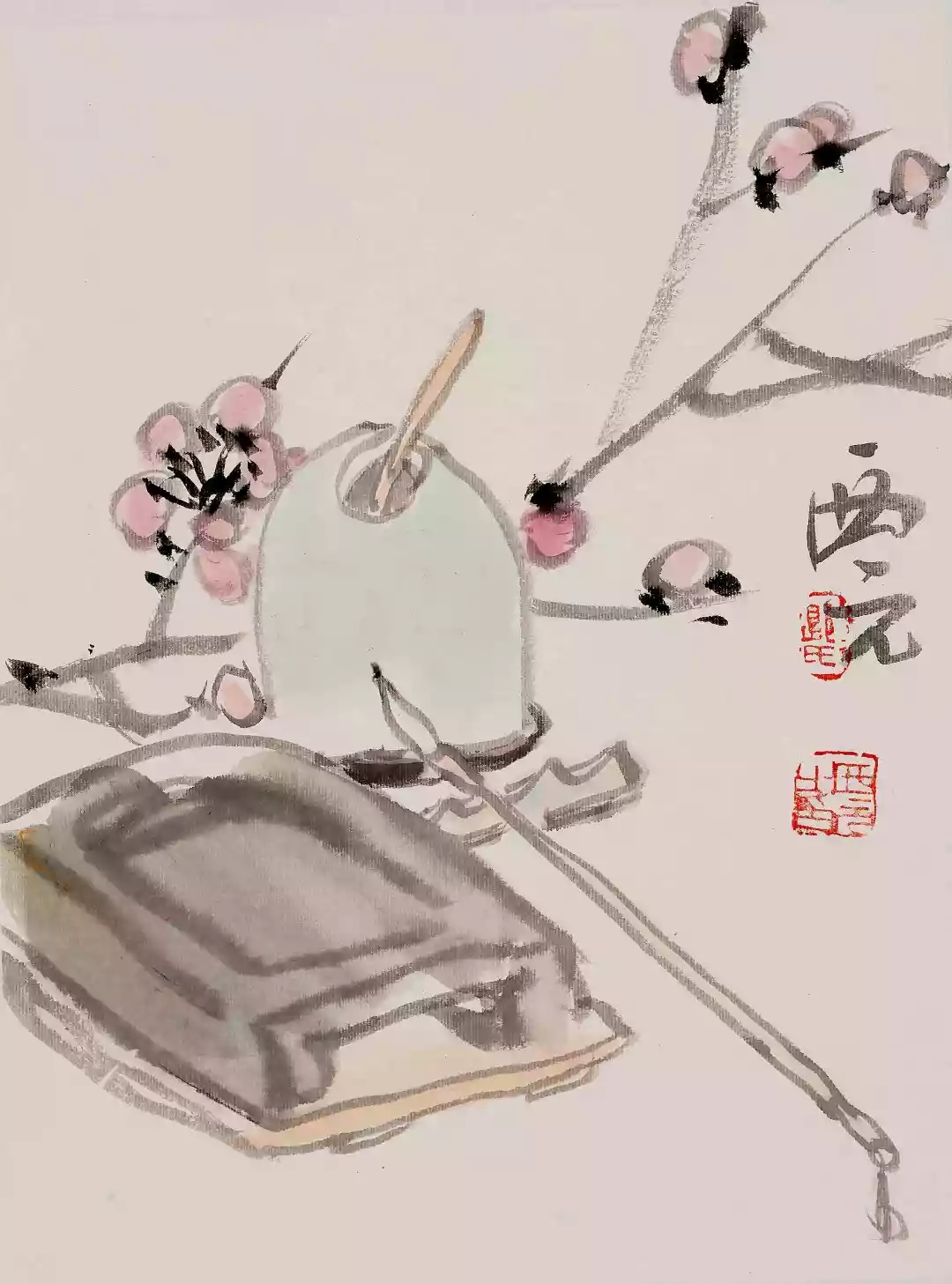 案頭我自裁宣纸,寫得新詩題瘦梅