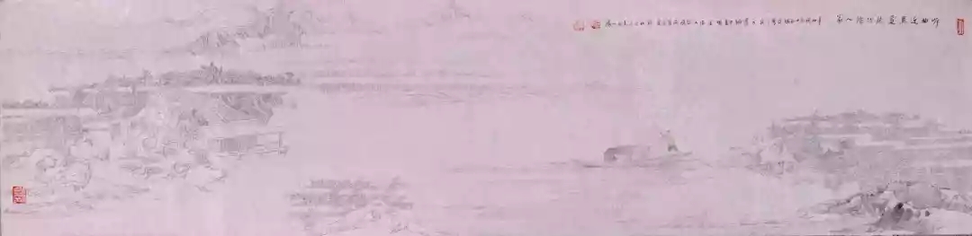 伏案揮毫天地小,图成釣月清波渺