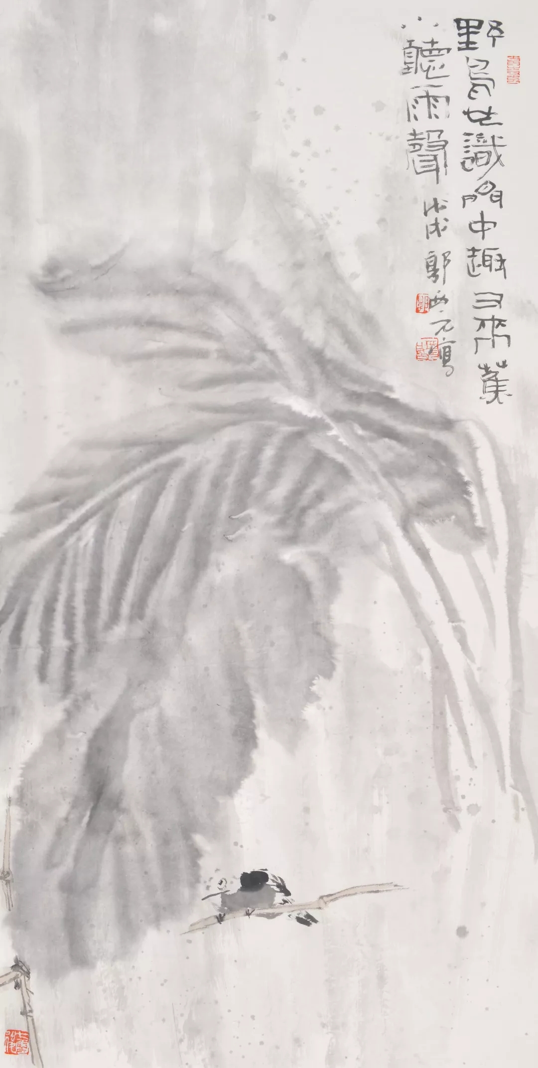 《听雨》郭西元 2018年作 《古梅》郭西元 2018年作