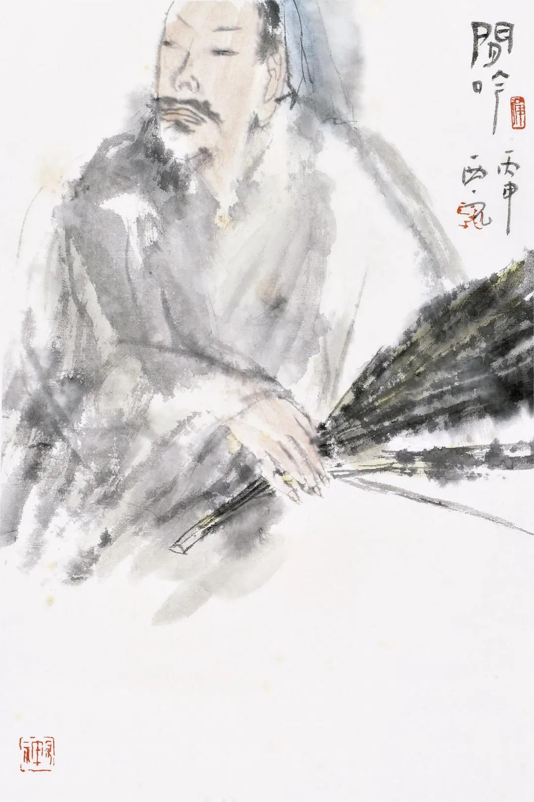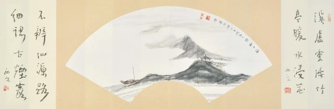 ▲向左滑动图片可观赏全幅作品 《溪上雲起(扇面)》 2017年作 |