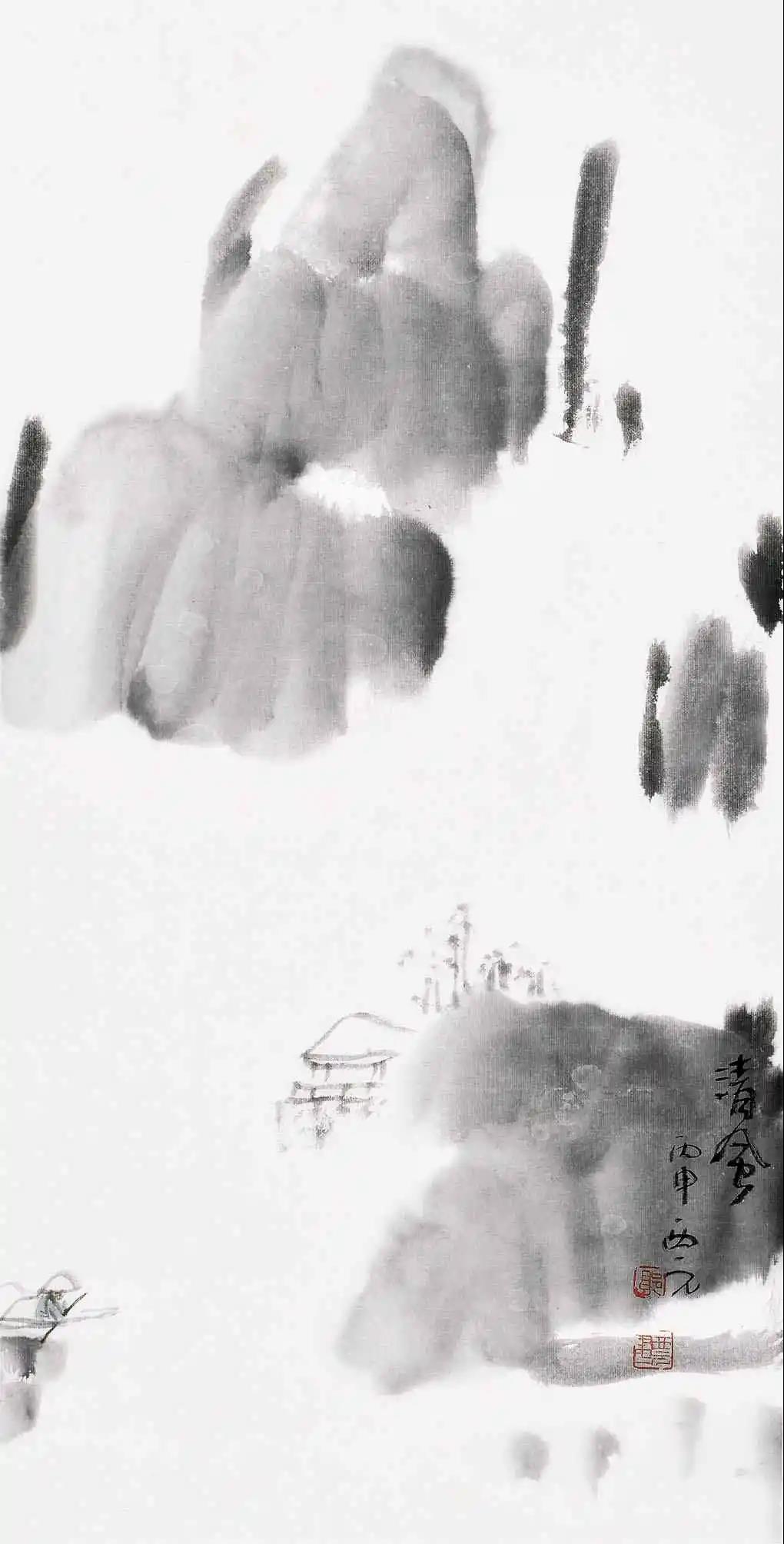 画楼泼墨雄浑 , 湖楼月 、半遮谷囤