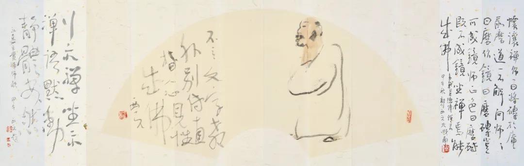 ▲向左滑动图片可观赏全幅作品 《品禅图(扇面)》 2014年作 |